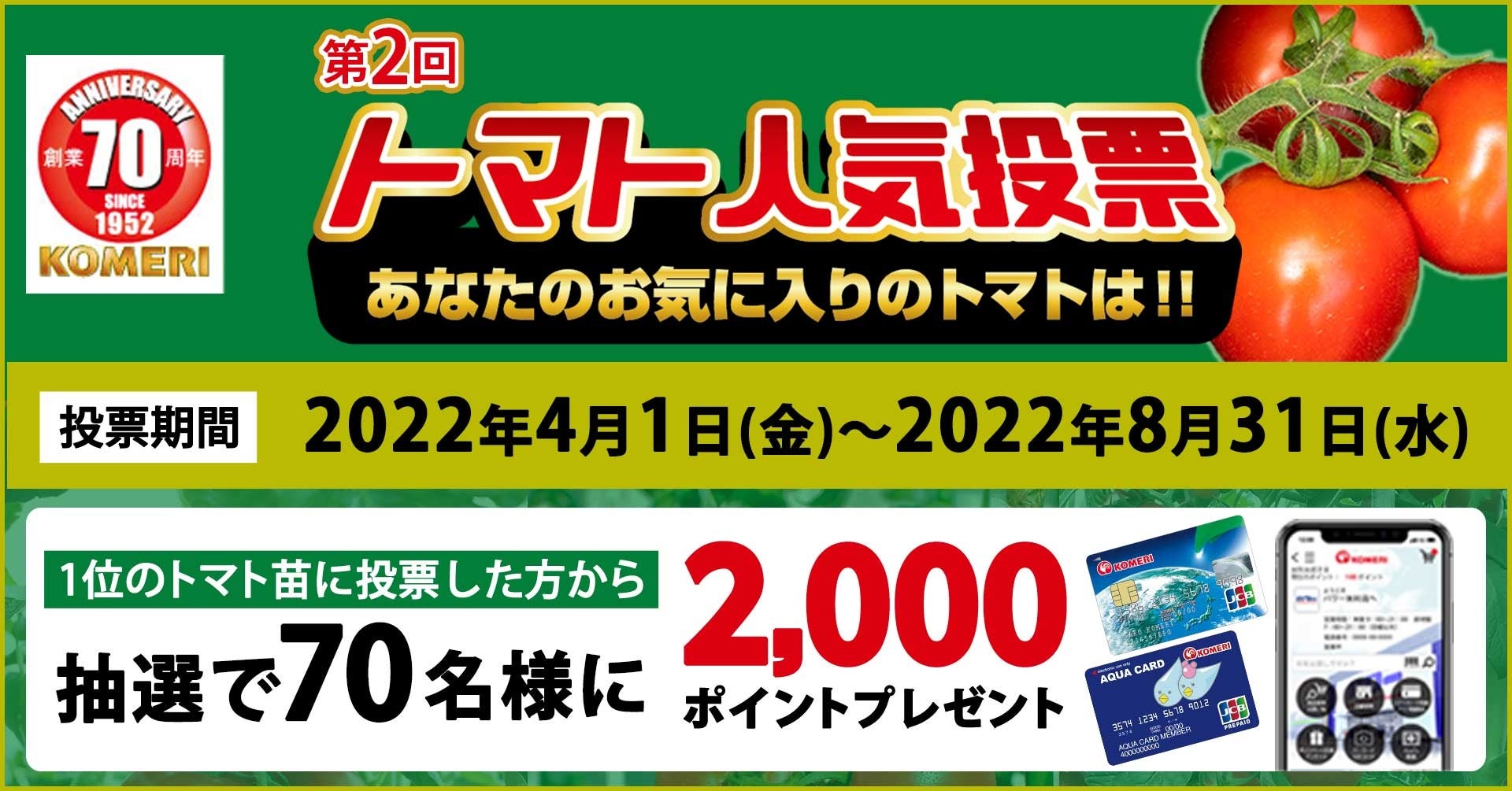 最も人気のある品種はどれ?1位のトマトに投票した方の中から抽選でコメリポイントをプレゼント!「第2回…
