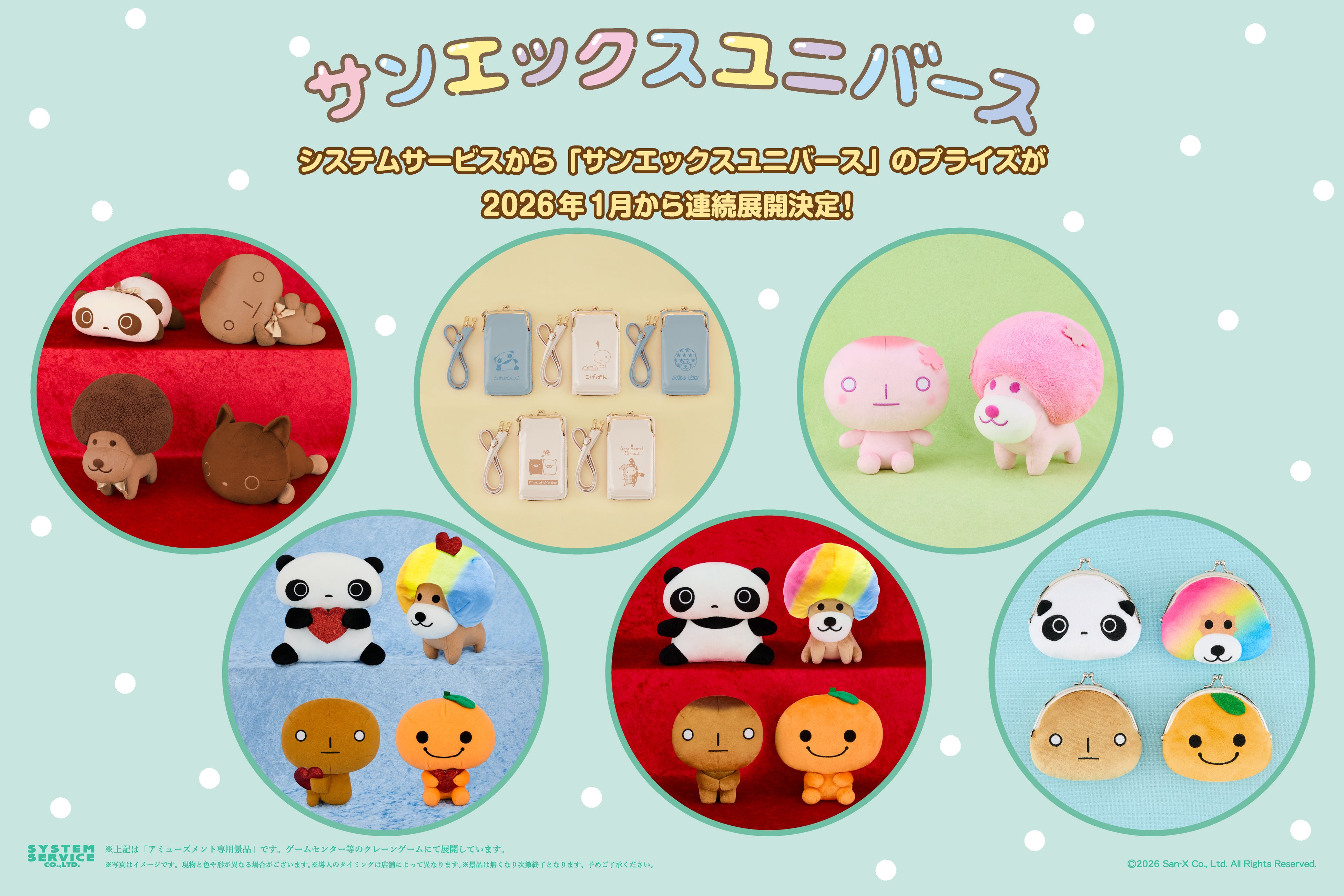 システムサービスから「サンエックスユニバース」のプライズが2026年1月から連続登場決定!