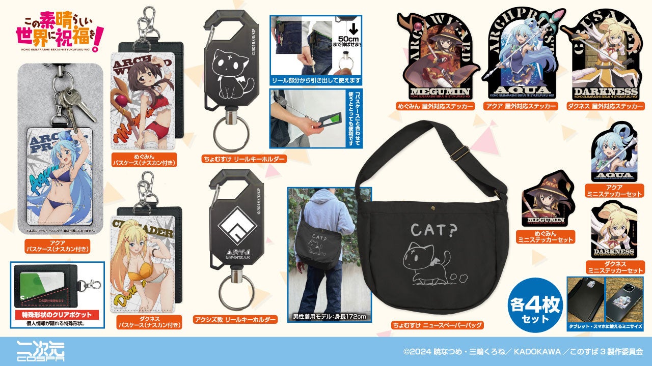 二次元コスパより、アニメ『この素晴らしい世界に祝福を!』アクアやめぐみん、ダクネスたちの「パスケース…