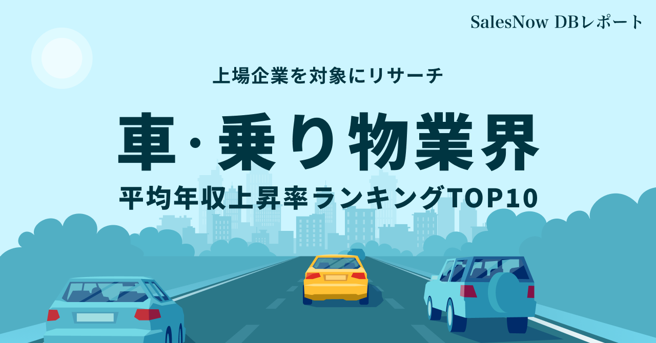 車・乗り物業界、平均年収上昇率ランキングTOP10を発表!/SalesNow DBレポート