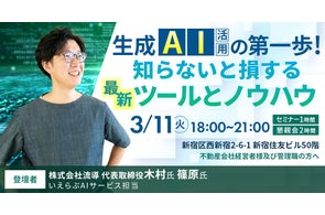 3/11(火)不動産業界向け「生成AI活用の第一歩!知らないと損する最新ツールとノウハウ 」セミナー…