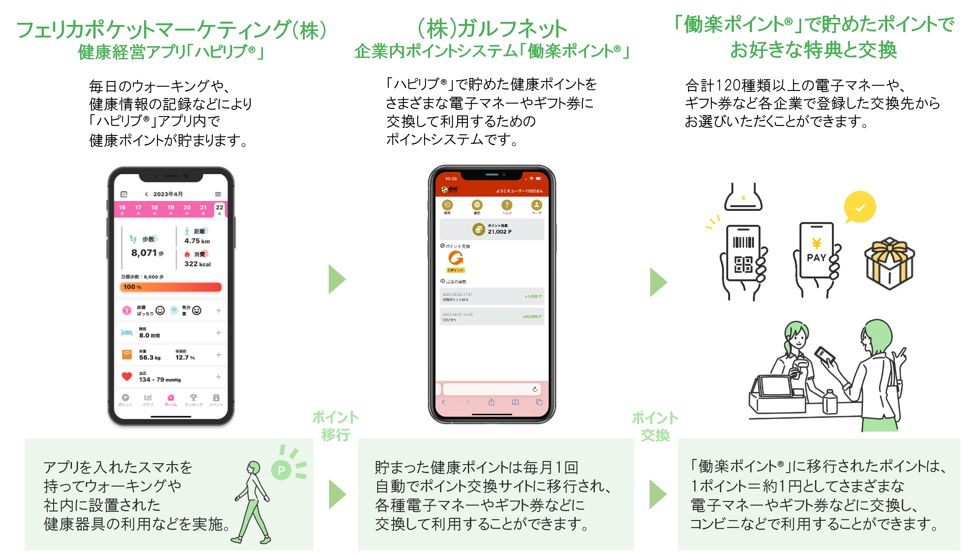 健康経営支援アプリ「ハピリブ®」と企業内ポイントシステム「働楽ポイント®」が自動連携