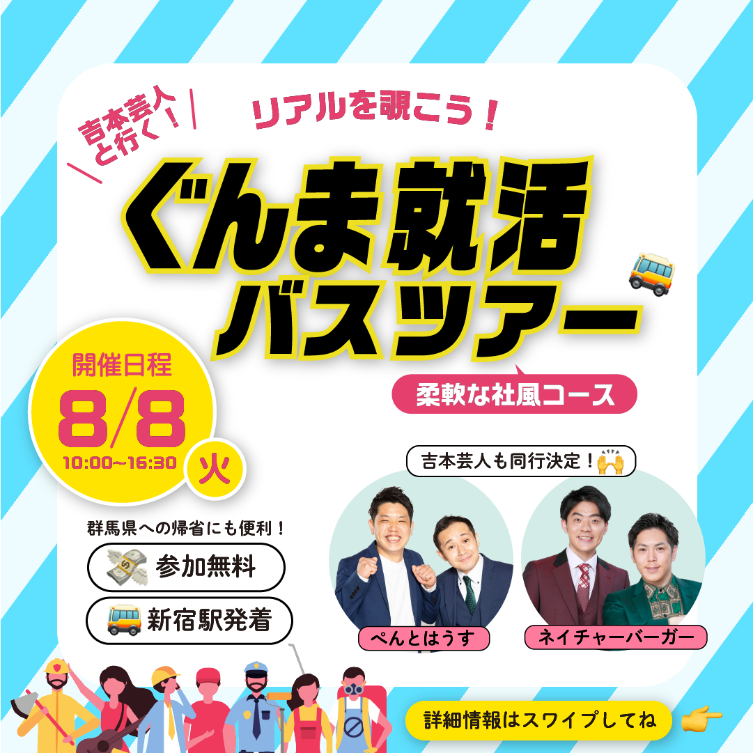 【参加無料】話題の『吉本芸人と行く!ぐんま就活バスツアー』次回以降のお知らせ 🚌💨