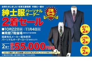 佐賀玉屋、10月22日(水)より「紳士服パーソナルオーダー2着セール」を開催