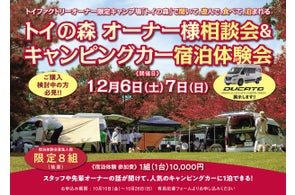 8組限定!トイファクトリーのプライベートキャンプ場でキャンピングカー宿泊体験会【12/6-7】
