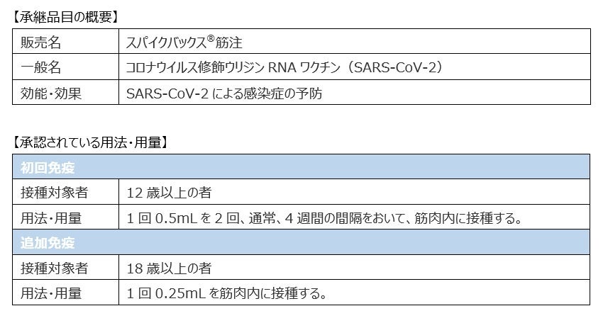 アール・ナノバイオ株式会社モデルナ・ジャパン、新型コロナウイルス感染症ワクチン「スパイクバックス®筋注」の製造販売承認の承継を…