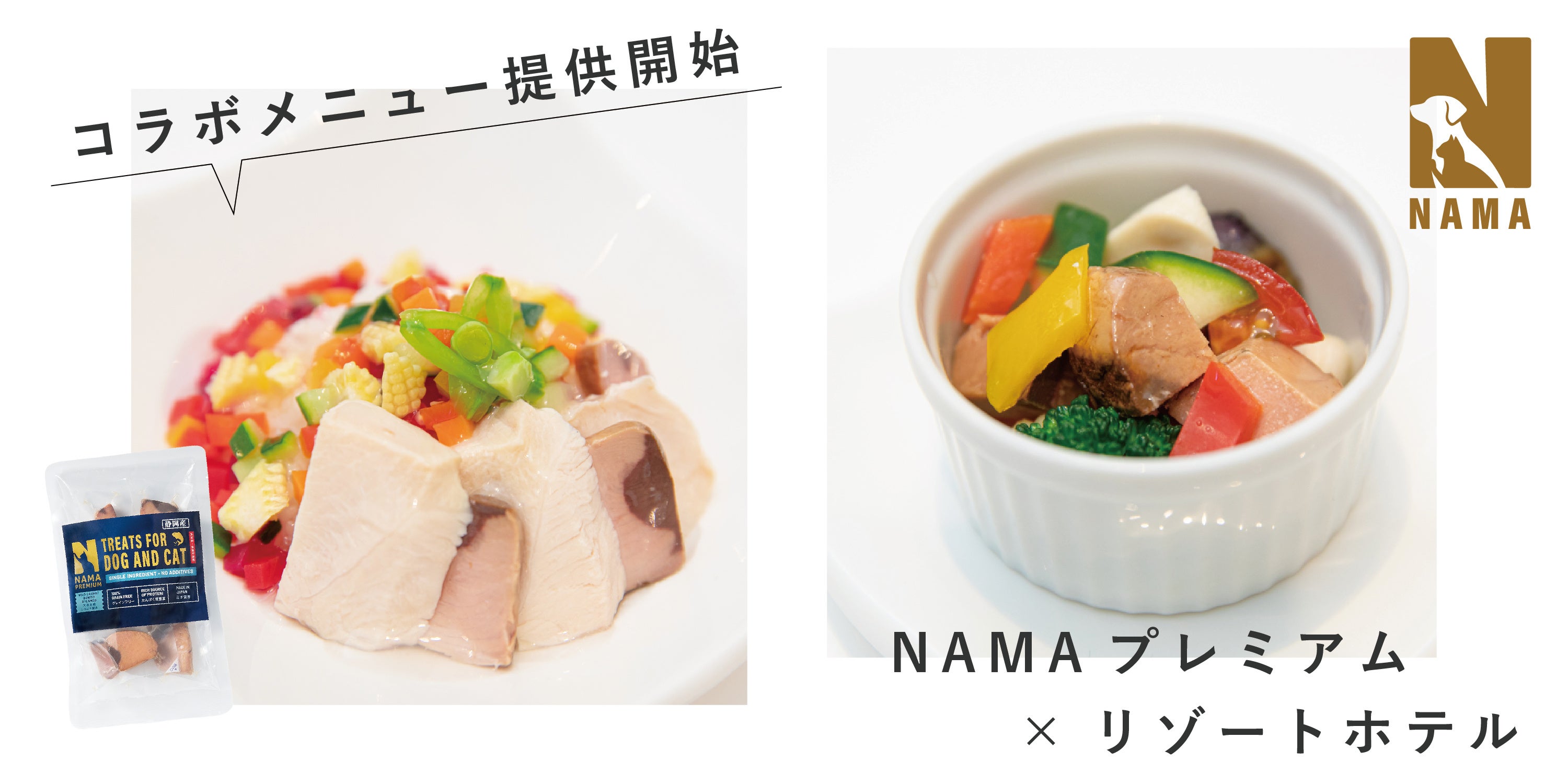 【オリジナル商品】「NAMAプレミアム 犬猫おやつ」×「リゾートホテル」シェフ監修のコラボメニューの…