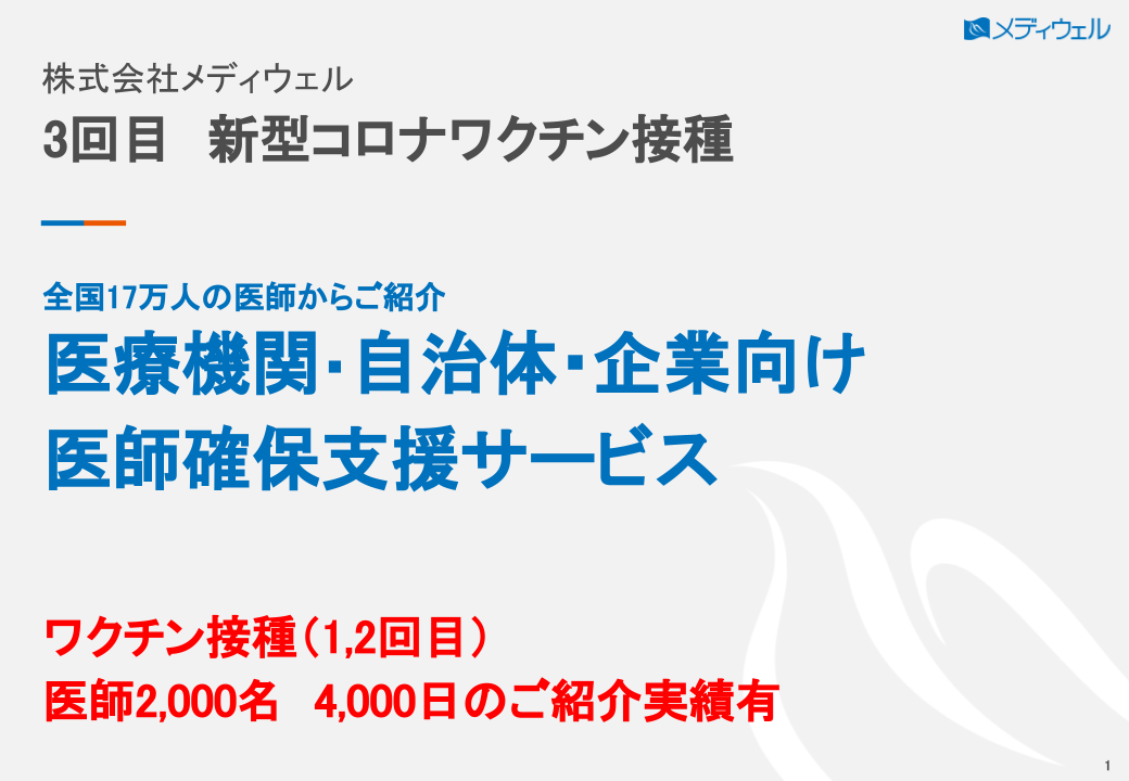 メディウェル新型コロナワクチン職域接種への体制構築支援(ワクチン接種医師紹介サービス)開始のお知らせ
