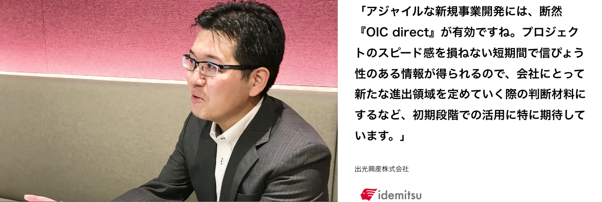 【OIC direct導入事例】新しい進出領域の検討にも「外部知見」の活用が有効!出光興産株式会社様…