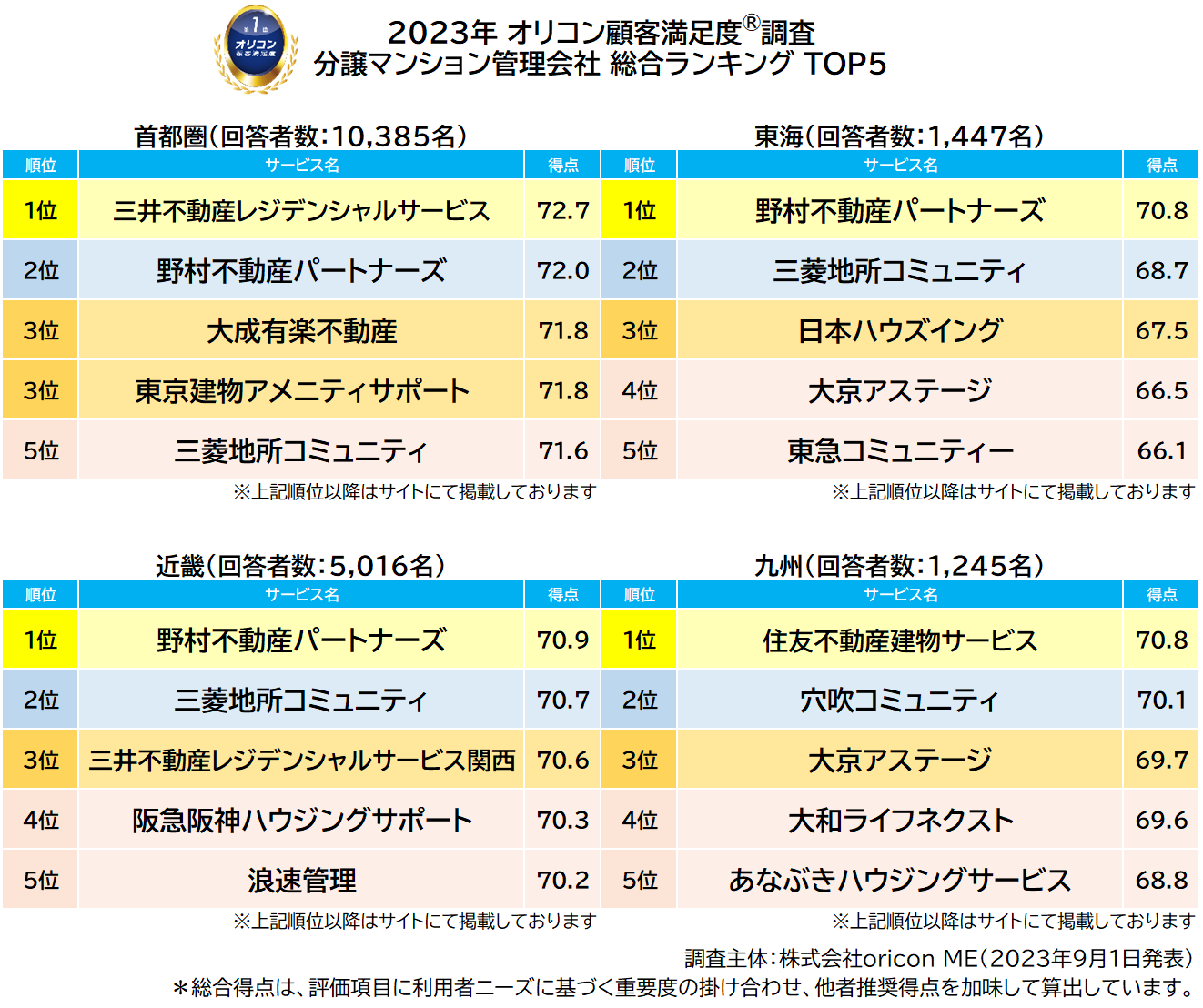 満足度の高い『分譲マンション管理会社』ランキング│【三井不動産レジデンシャルサービス】が『首都圏』で…