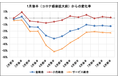 「Go Toトラベル」キャンペーン期間中の8月前半の国内消費指数。「旅行」「宿泊」は下落幅縮小するも…