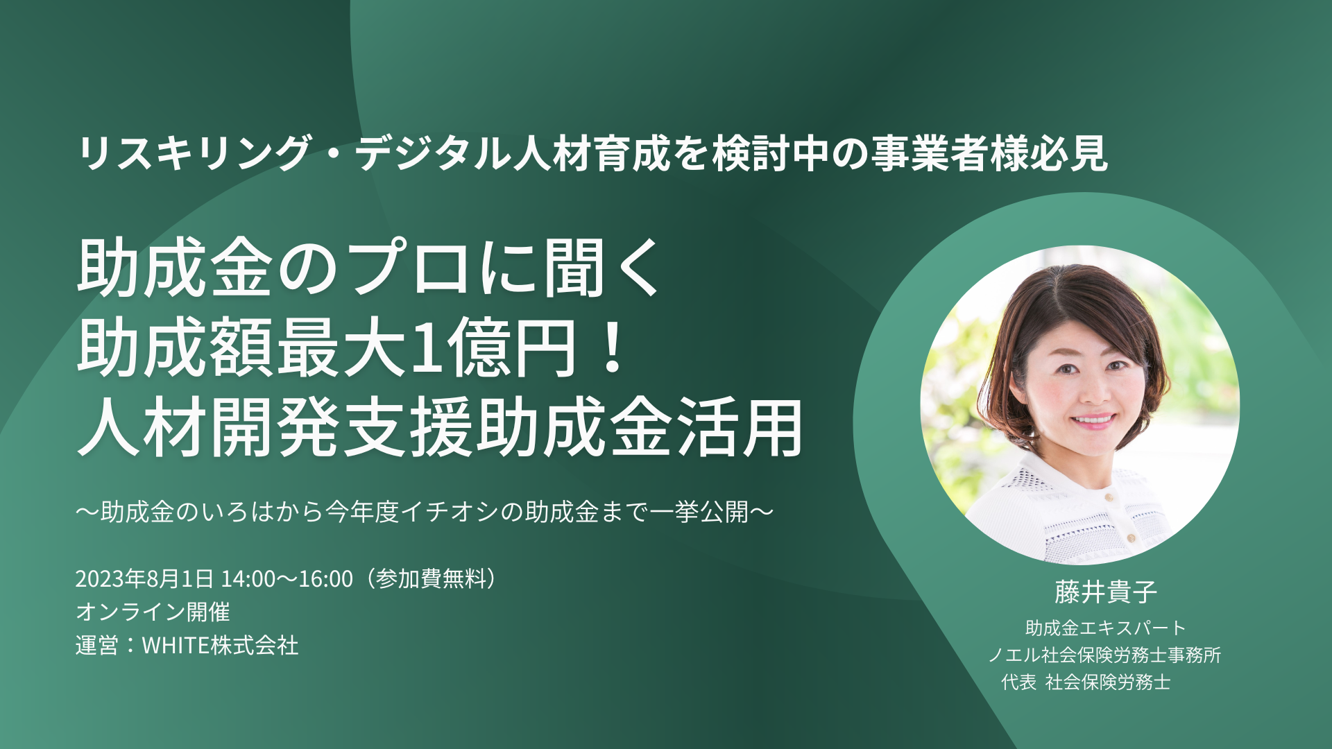 【無料ウェビナー開催】人事・教育担当者必見! 最大助成額1億円 人材開発支援助成金活用セミナー
