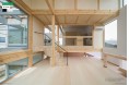 高級キッチンを京都らしく演出する、京都府内産木材を内外装・構造に活用した木造3階建て事務所ビルを京都…