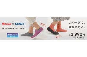 ベイシア×グンゼ 共同開発「靴下を履いているような感覚で履ける」を目指した靴「STRETCH+シュー…