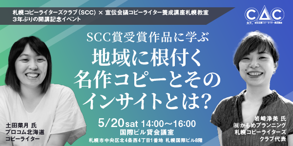 5月20日(土) オンライン/オフライン ハイブリット開催 札幌コピーライターズクラブ(SCC)賞受…