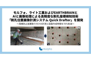 モルフォ、ライト工業およびEARTHBRAINと、AIと画像処理による高精度な削孔座標検知技術「削孔…