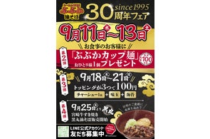 吉祥寺「らーめん専門店ぶぶか」9月11日から『30周年フェア』を開催!