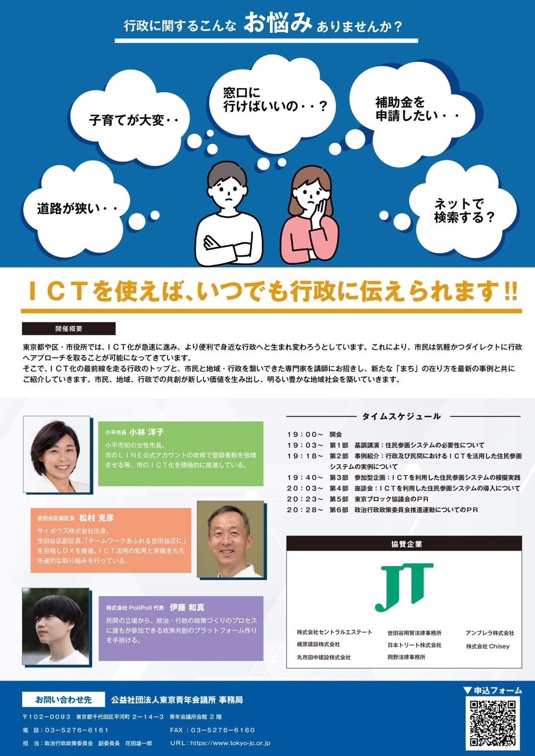【参加者募集中】ICTを活用した住民参画システムをテーマとした「公益社団法人東京青年会議所3月例会~…