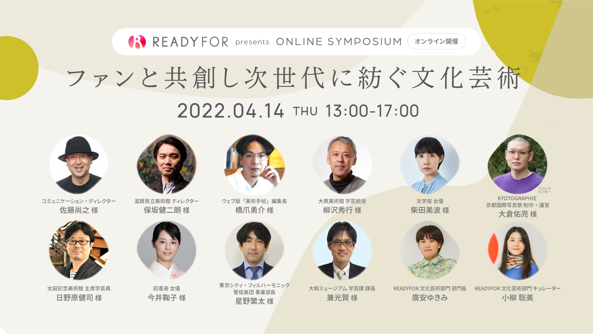 【4/14(木)オンラインシンポジウム】ファンと共創し 次世代に紡ぐ文化芸術 READYFOR主催