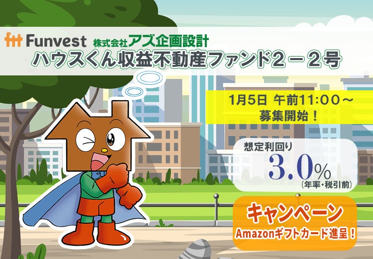 貸付型クラウドファンディング「Funvest」1/5より新ファンド「アズ企画設計 ハウスくん収益不動…
