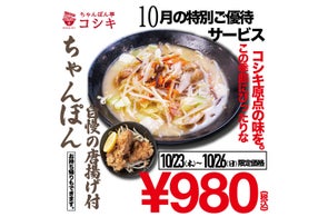 【10月福岡のお得ランチセット】福岡ちゃんぽんの老舗「ちゃんぽん亭コシキ」より、秋にぴったりの“アツ…