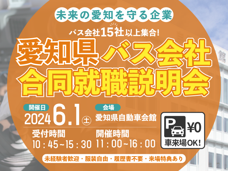 中部地方のバス会社が多数参画!バス運転手専門の就職イベント『愛知県バス会社合同就職説明会』を6/1(…