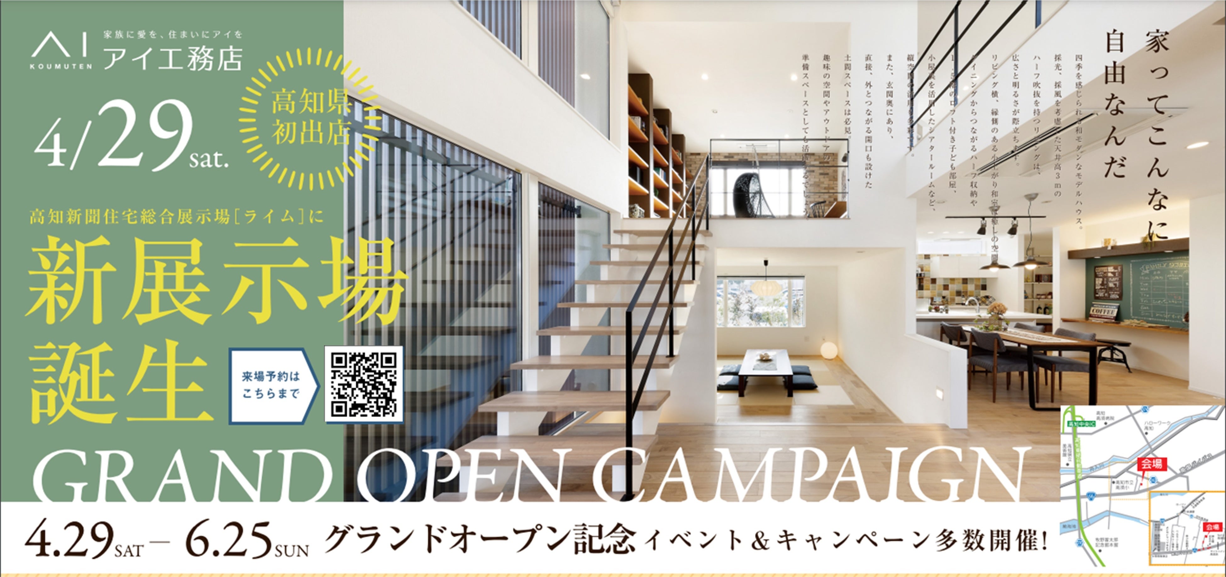 住宅会社売上高成長率第1位 アイ工務店 ※1 高知県初出店!「高知展示場」 2023年4月29日(土…