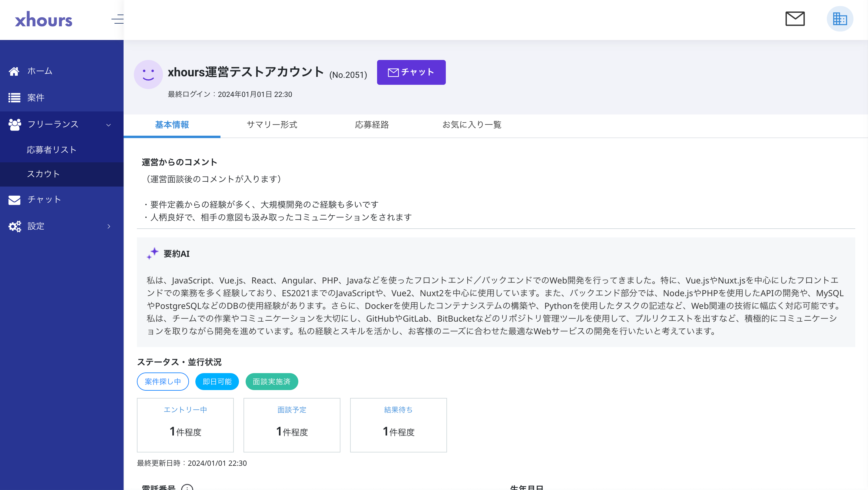 ITフリーランス向けダイレクトスカウト「xhours」、「AIスキルシート診断」機能β版をリリース