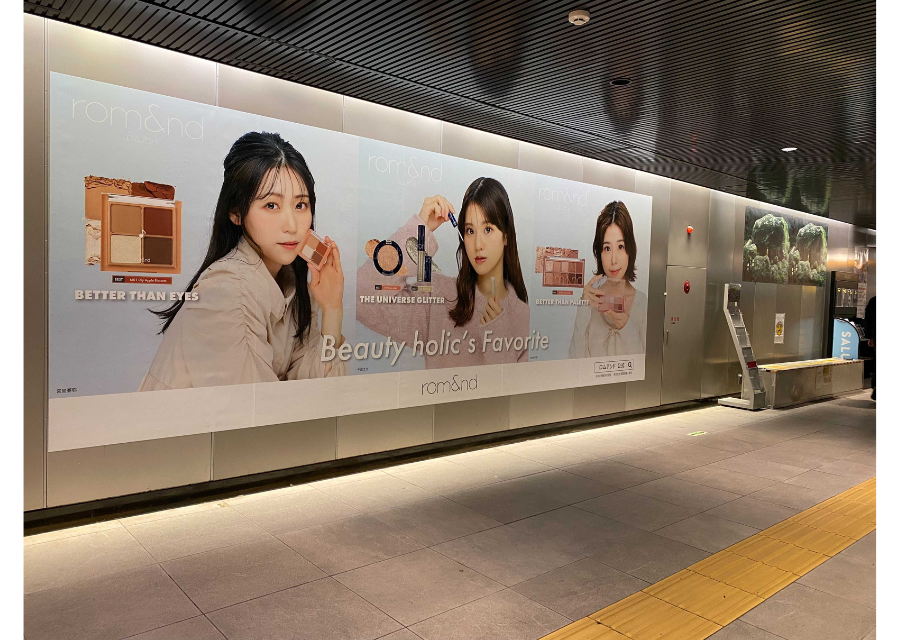 『rom&nd』PRモデル28名の広告が渋谷駅に掲出!