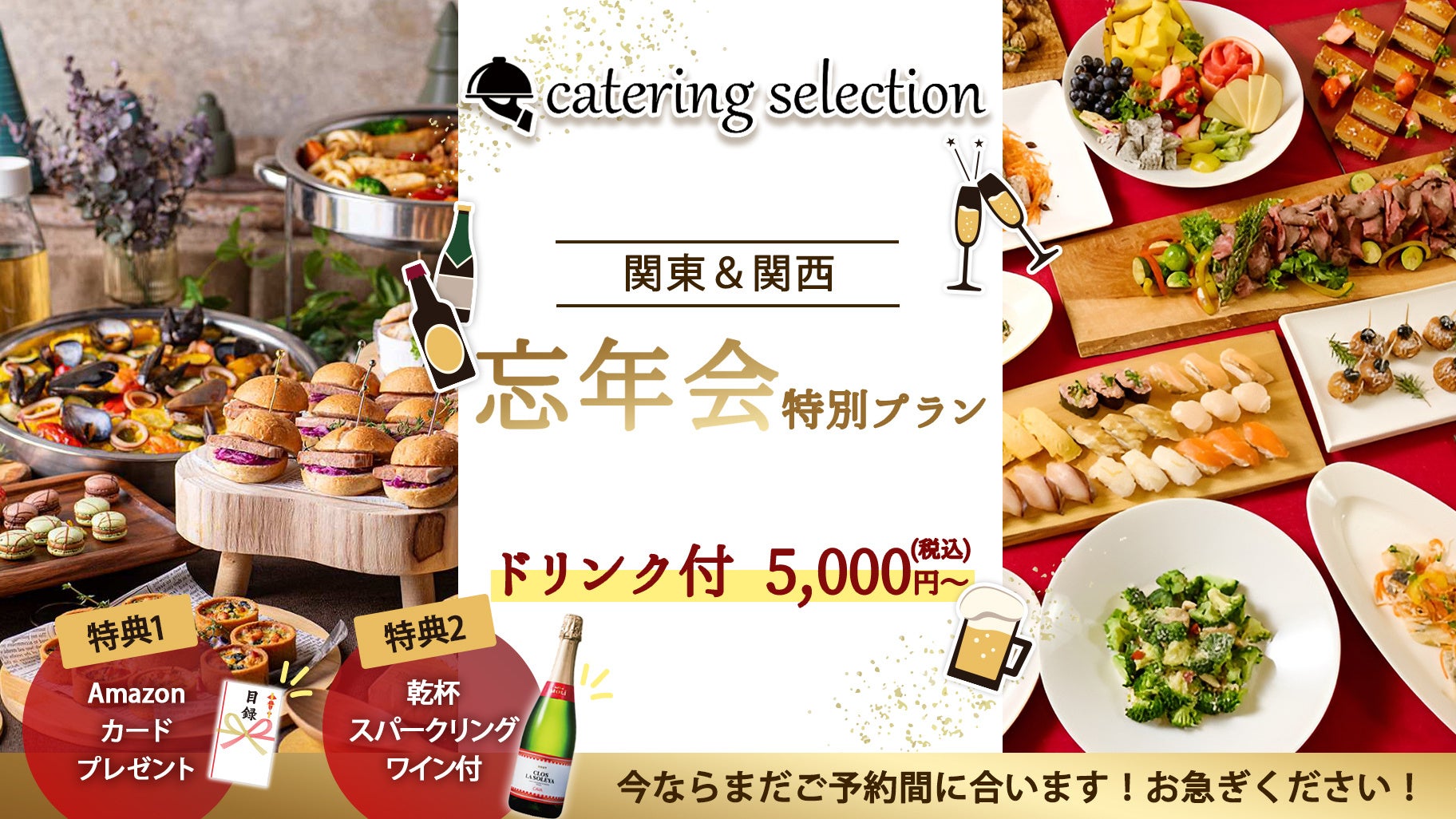 【忘年会が盛り上がる2大特典付!】ギフト券&乾杯泡ワインプレゼント!忘年会特別ケータリングプラン