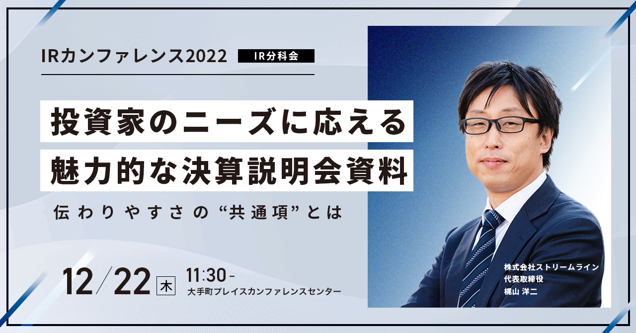 資料作成代行のストリームライン、IRカンファレンス2022(東京・大手町)に登壇。「投資家に伝わるI…