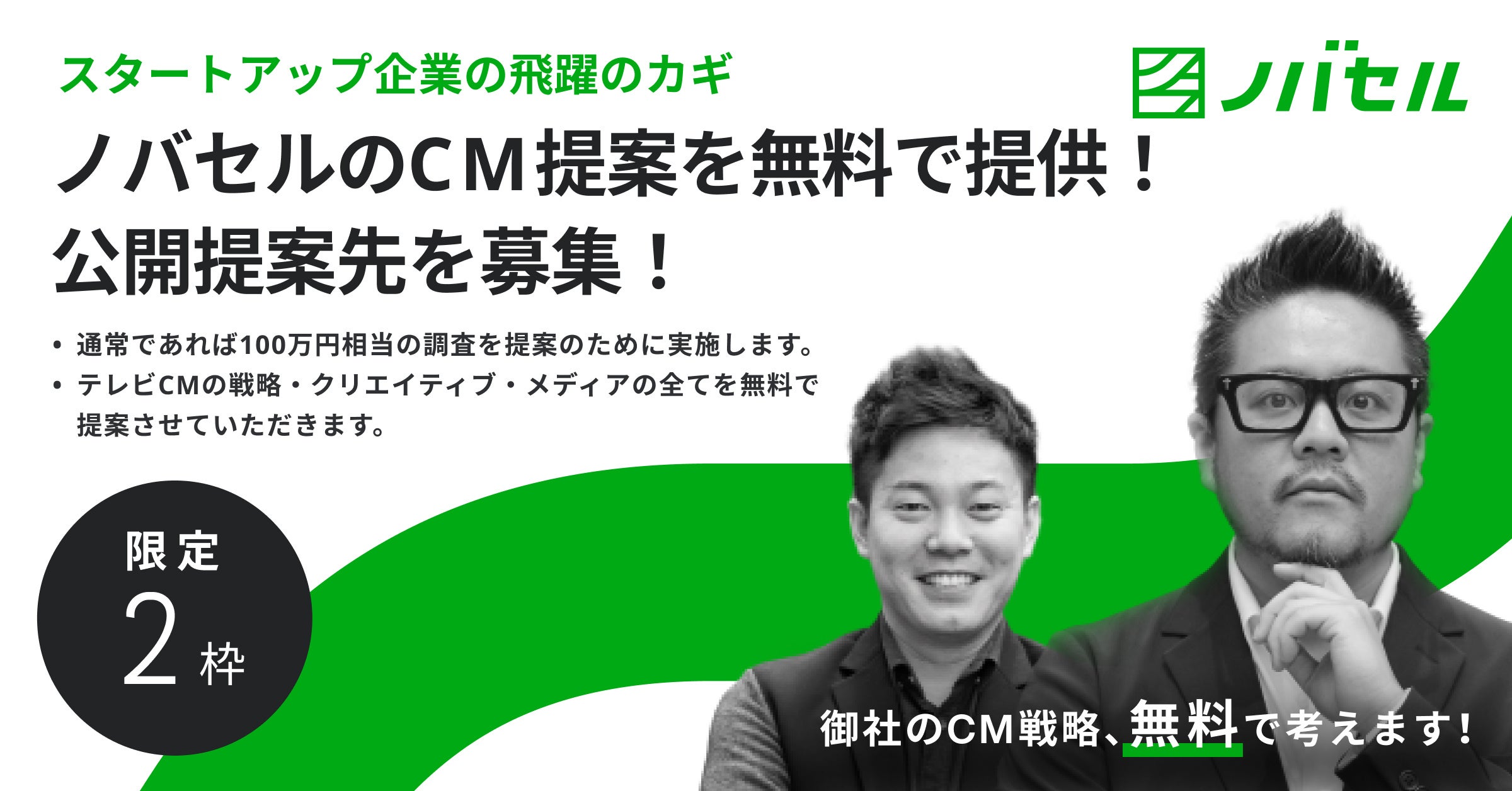 【好評のため第二回開催!スタートアップ企業の飛躍のカギ】ノバセルのテレビCMの提案を無料で提供!公開…