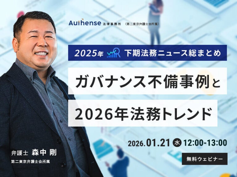 【無料ウェビナー開催2026.1.21】2025年下期法務ニュース総まとめガバナンス不備事例と202…