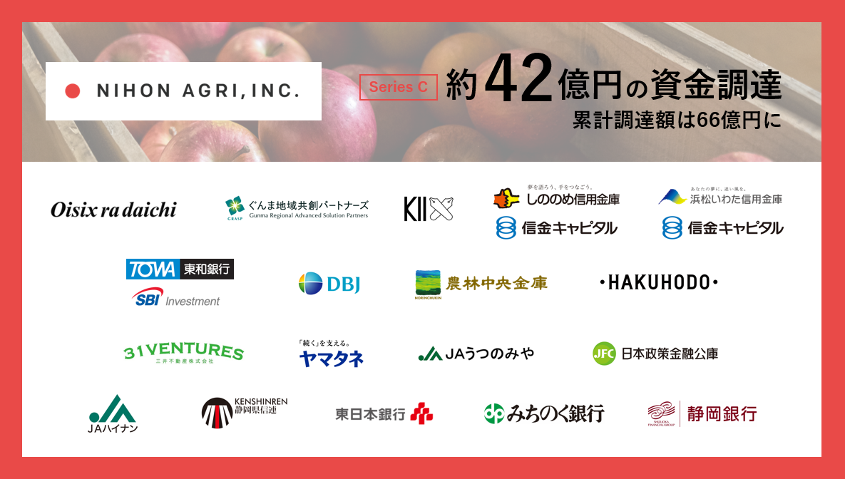 日本農業、約42億円の資金調達を実施。累計調達額は66億円に