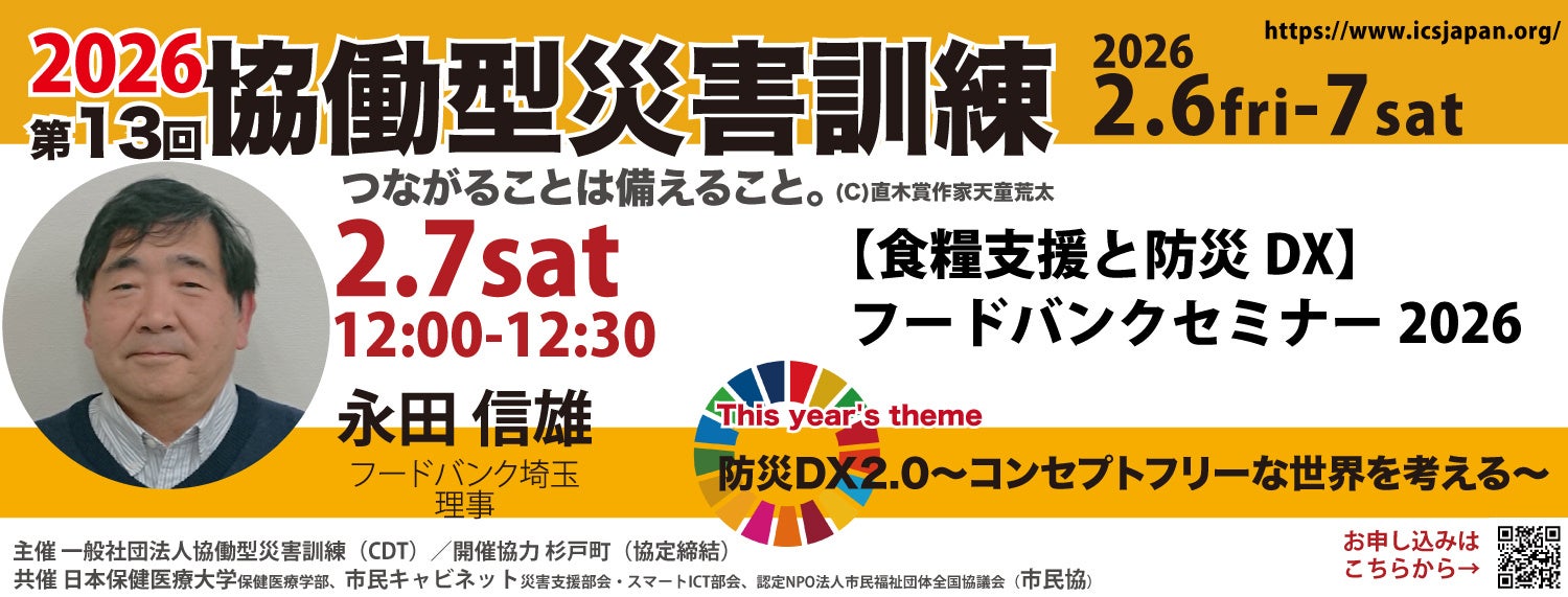 【2/7土】第13回 協働型災害訓練 in 杉戸にフードバンク埼玉・永田信雄氏が登壇「食のセーフティ…