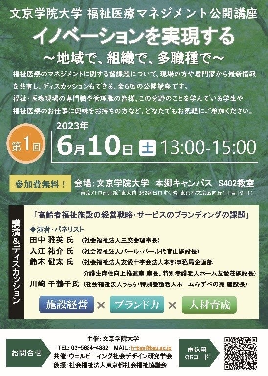 文京学院大学 福祉医療マネジメント公開講座 全6回 「イノベーションを実現する~地域で、組織で、多職…