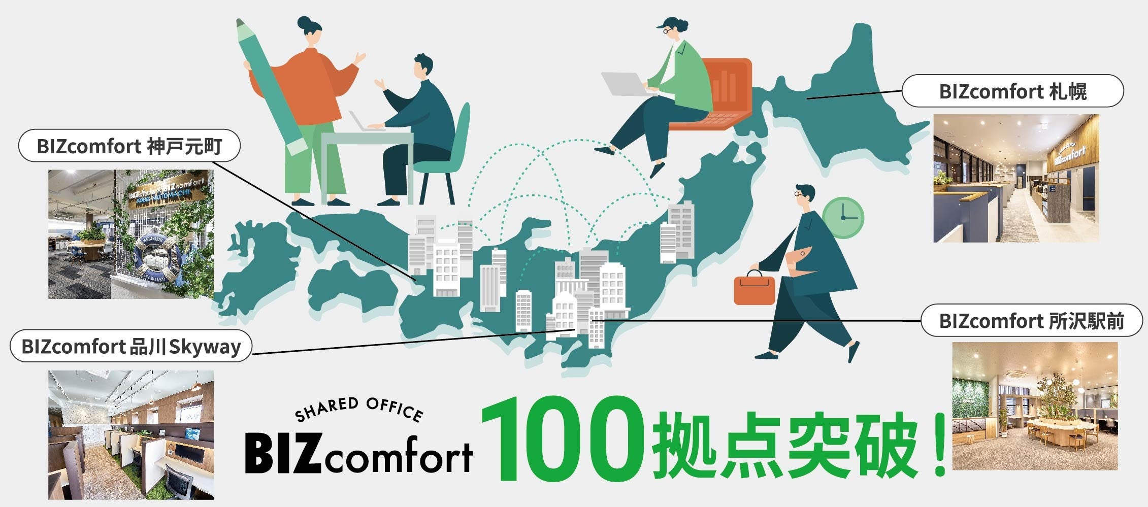 BIZcomfort直営店全国100拠点突破!「はたらくをもっと自由に快適に」を応援するシェアオフィ…