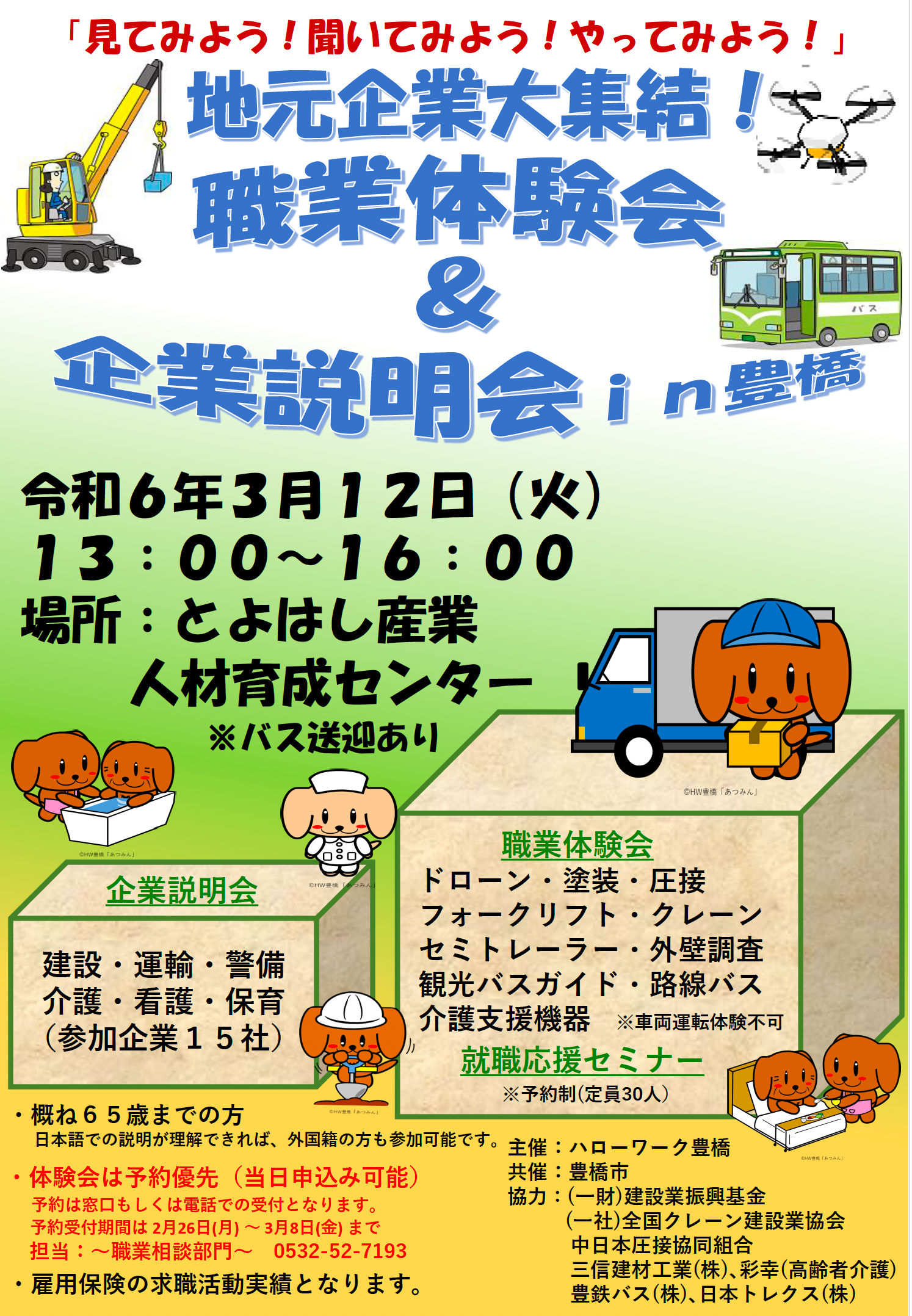 キャリアを広げてみませんか?「地元企業大集結!職業体験会&企業説明会in豊橋」