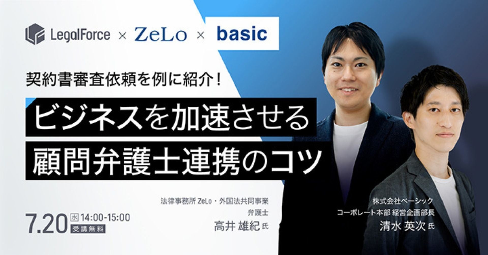 法律事務所ZeLoのリーガルサービスを活用する「株式会社ベーシック」。法務体制を弁護士とともに構築し…