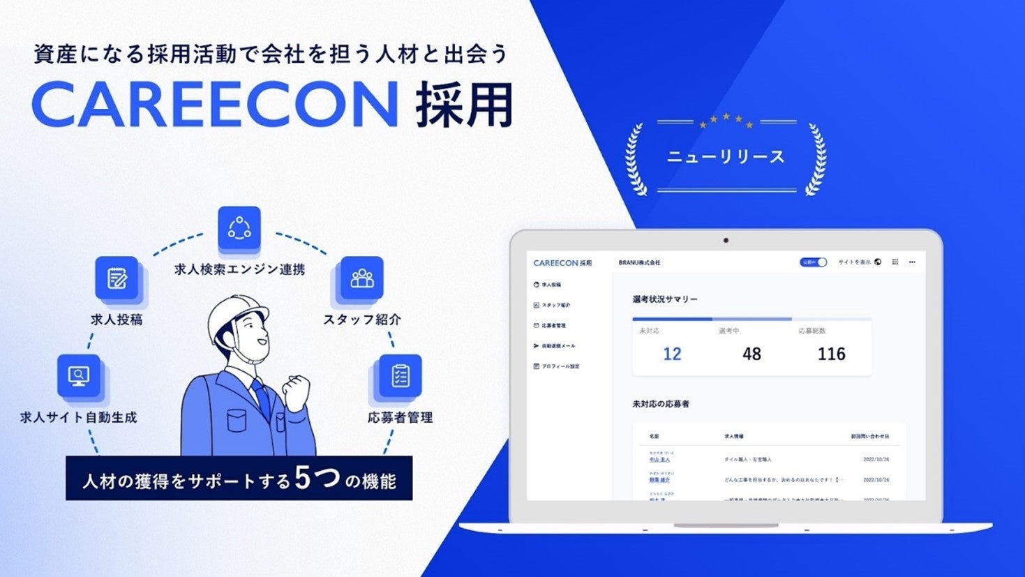 建設業の人材不足の解消をサポートする採用管理システム(ATS)「CAREECON 採用」をリリースし…