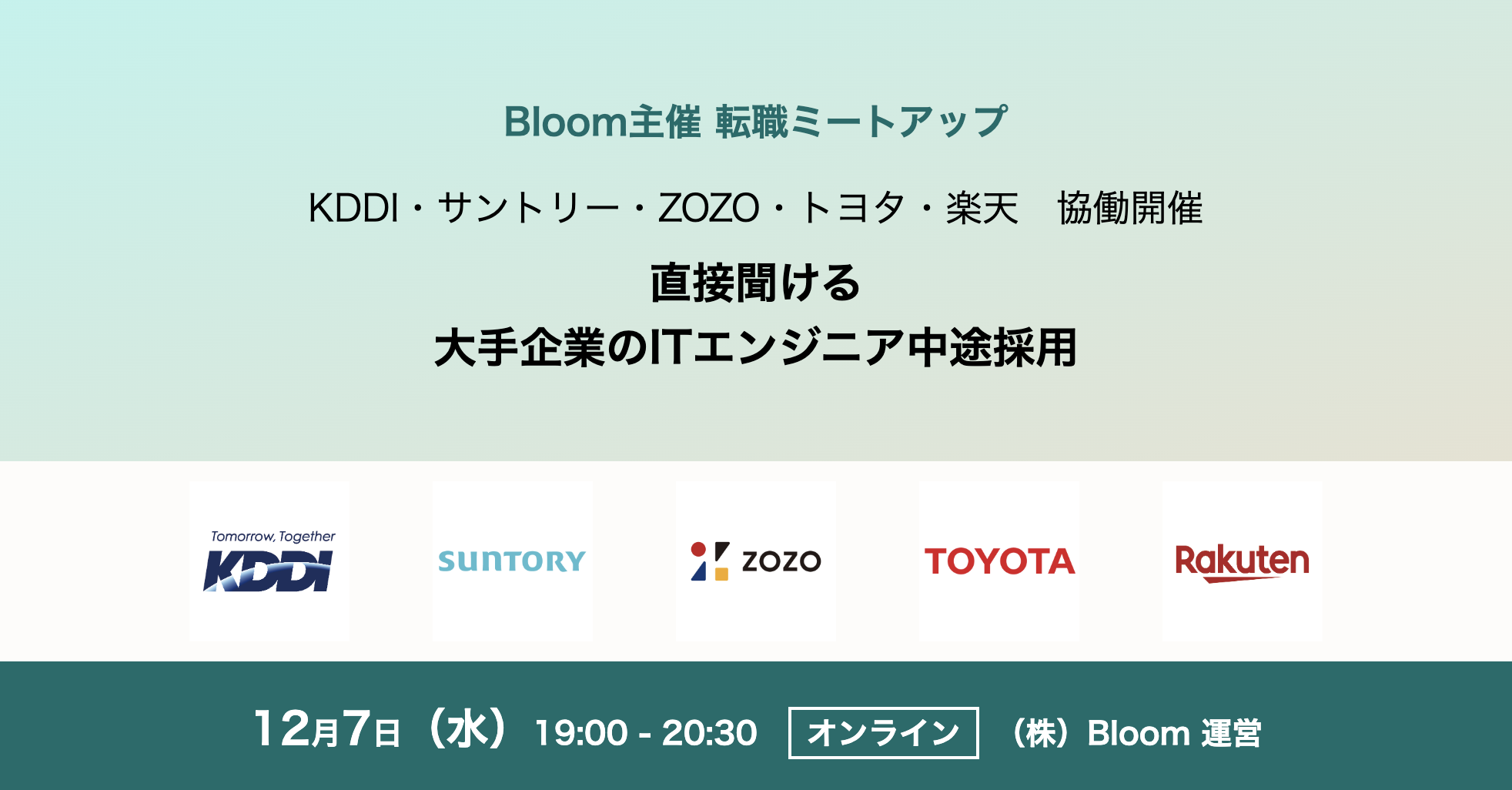 KDDI・サントリー・ZOZO・トヨタ・楽天がITエンジニア採用に向け協働、2022年12月7日にオ…