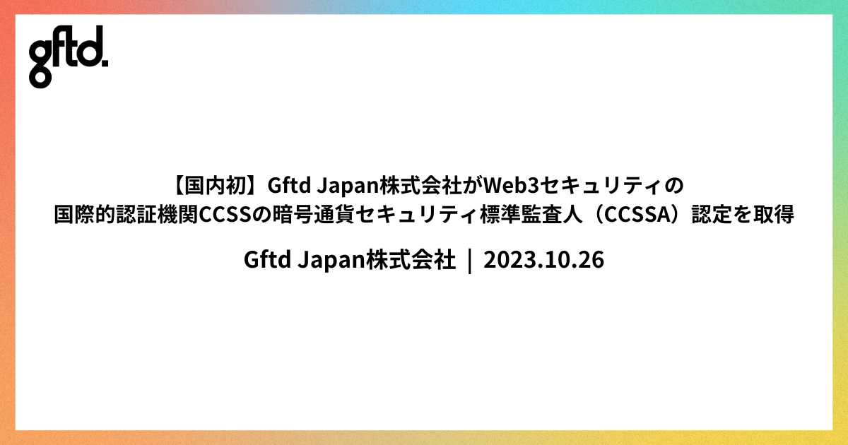 【国内初】Gftd Japan株式会社がWeb3セキュリティの国際的認証機関CCSSの暗号通貨セキュ…