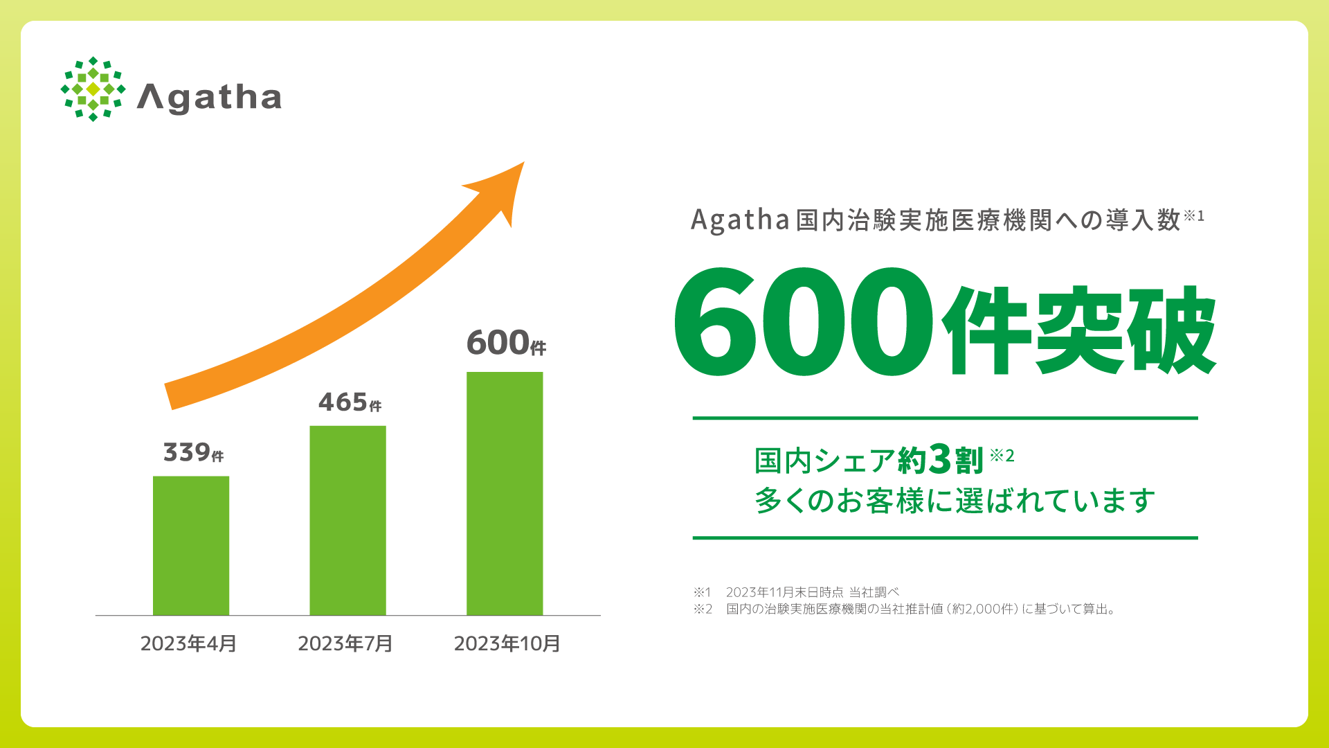 治験・臨床研究の文書管理クラウドサービス『Agatha』国内の治験実施医療機関への導入数が600件(…