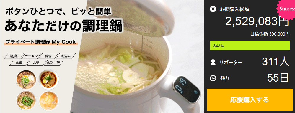 三金商事株式会社(MITSUKIN SHOJI Co., Ltd.)Makuake公開からわずか2週間で250万円(800%)達成!!1人前の本格調理!ボタンひとつでピ…