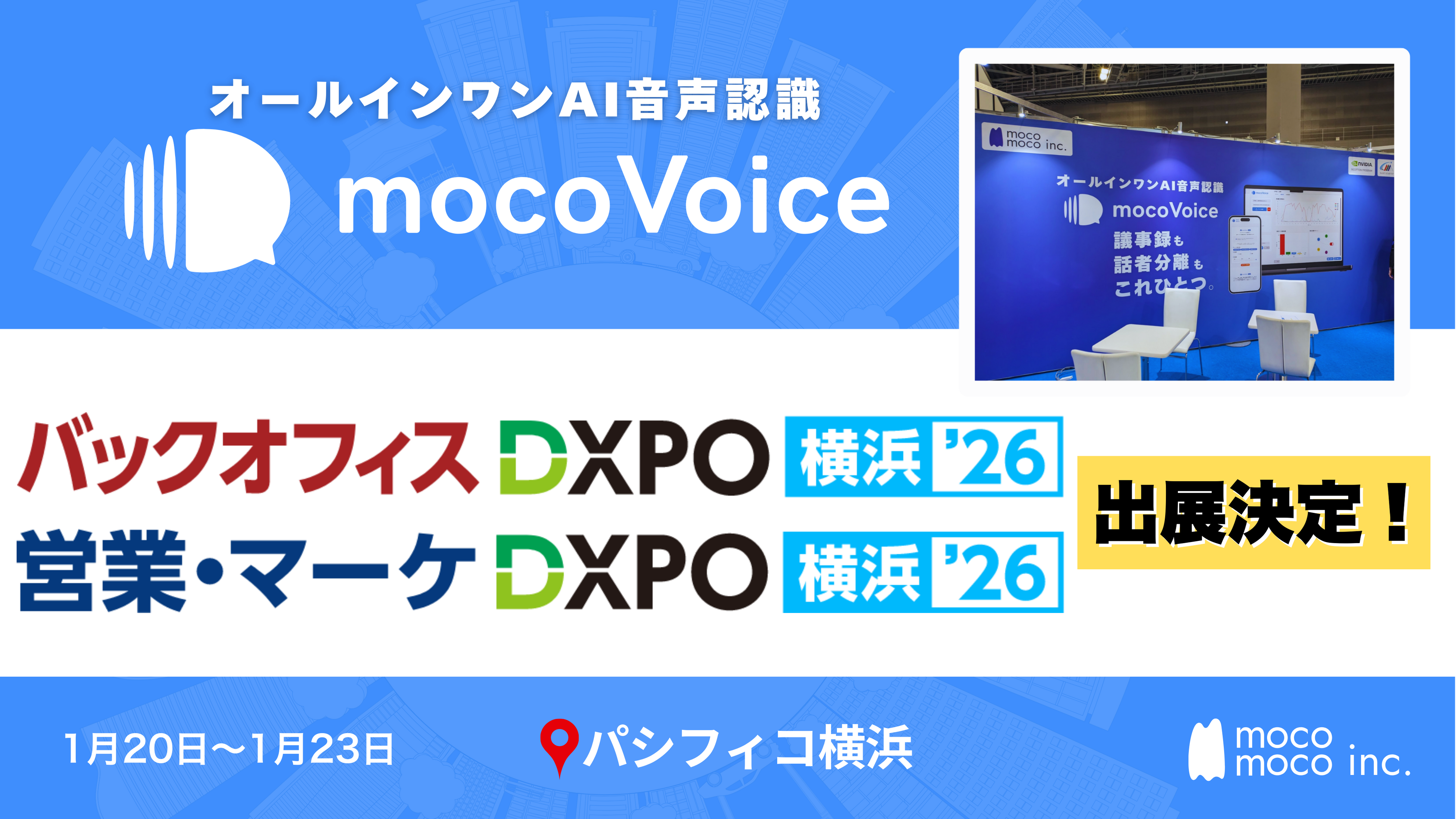 【議事録DX最前線】音声認識AI「mocoVoice」が「バックオフィスDXPO 横浜'26」「営業…