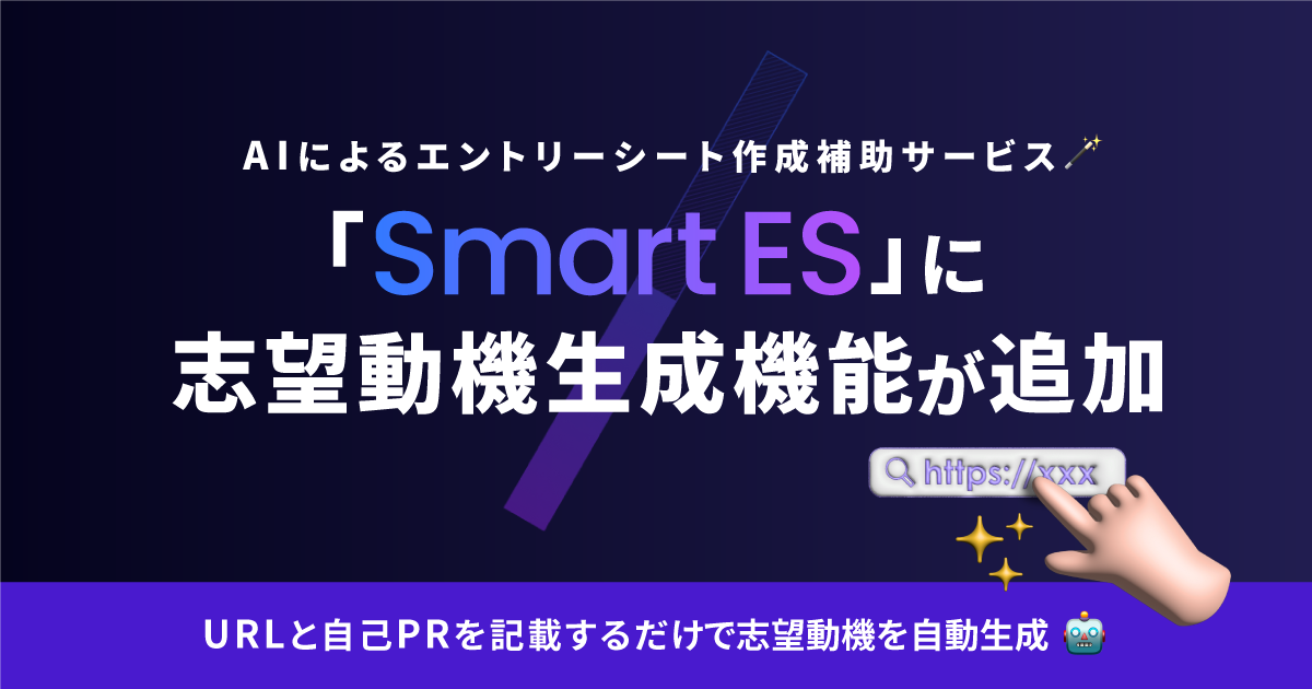 【就活生必見】AIによるES作成補助サービス『SmartES』に志望動機生成機能が追加