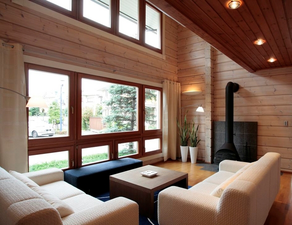 高品質なフィンランド製ポーラーパイン材(北欧赤松材)を壁材および構造材として使用