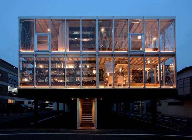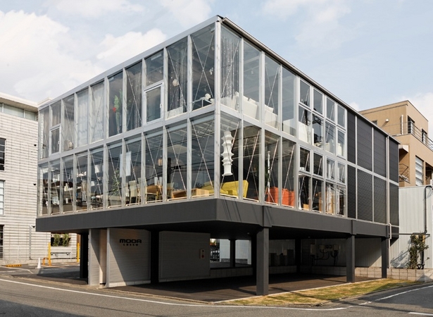 MOOR LUSSO 中目黒店は、駐車場の空中権を活用した店舗で、“空中に浮かぶインテリアショップ”とも呼ばれ、夜になると、さらに幻想的な雰囲気でお客様をお迎えします。