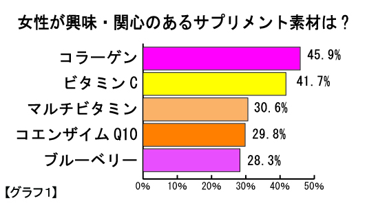 ■女性が最も興味関心のあるサプリメント素材は「コラーゲン」