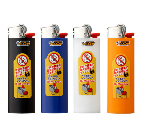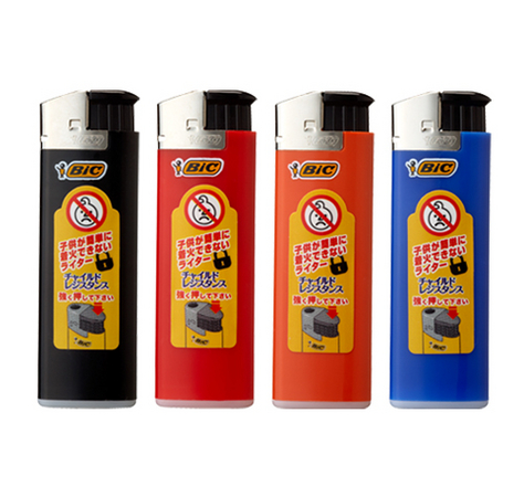 「消費生活用製品安全法による規制」に伴い、昨年より販売されているチャイルドレジスタンスライター。シンプルなデザインはもちろん、その品質の高さから、「セブンイレブン」「ローソン」「ファミリーマート」などの主要コンビチェーンで販売されています。